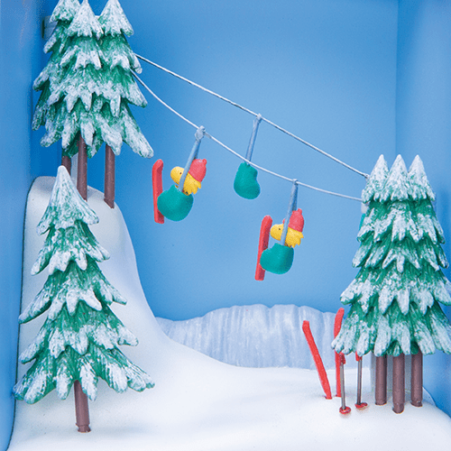 31糊塗塌客和他的朋友們友乘坐滑雪纜車到山上準備滑雪。